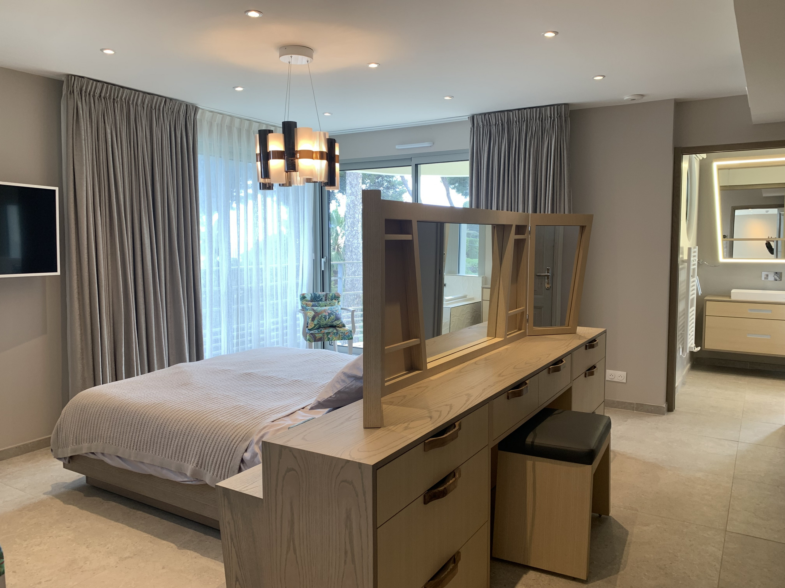 Cette construction neuve met en valeur le design Art Déco avec des matériaux de qualité, des équipements haut de gamme et une décoration raffinée, créant une atmosphère sereine au milieu des pins et des palmiers.